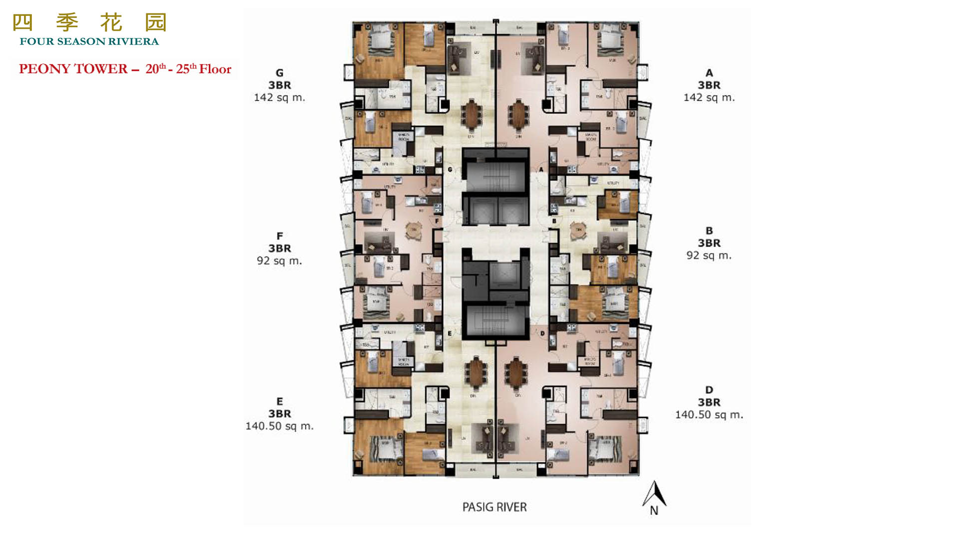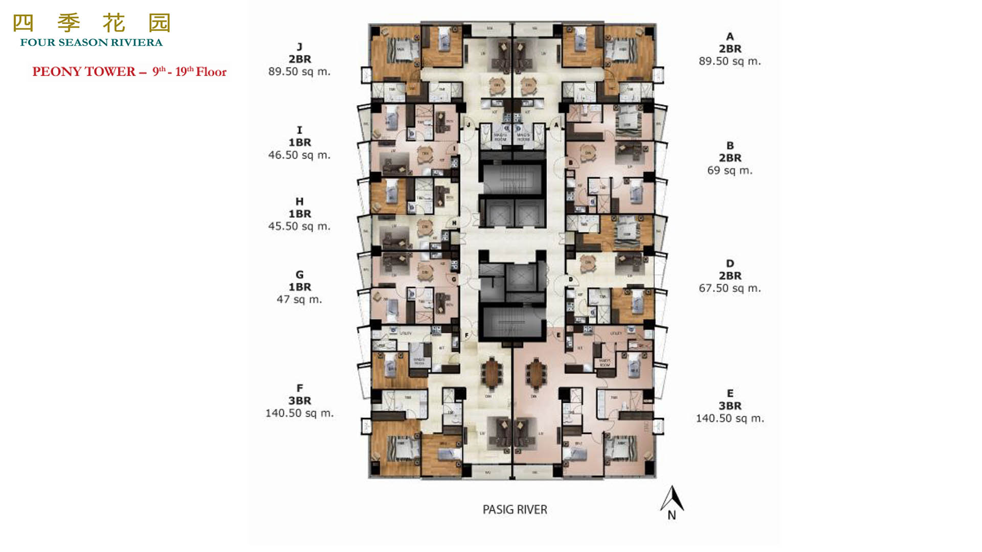 Four Season Riviera is Manila’s best kept secret. It is a riverfront home, privy to stunning views of the world-famous Manila Bay sunset, celebrated landmarks – Fort Santiago, Intramuros and the historic Post Office and future Fullerton Hotel – and a hectare of amenities and condos for sale complete with landscaped gardens.